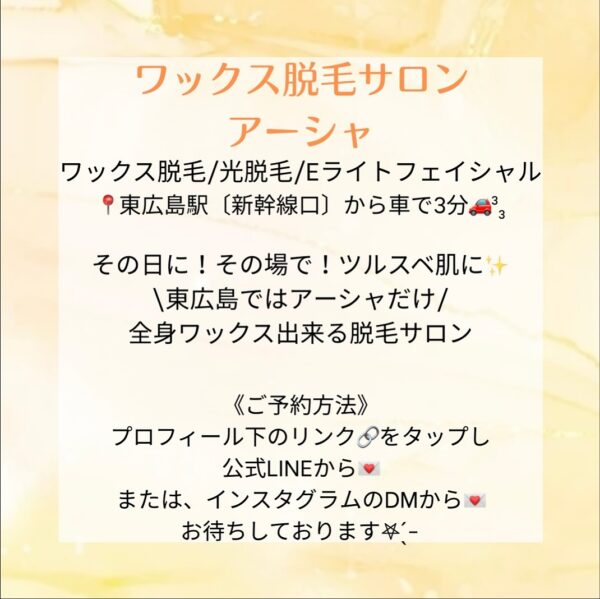 #東広島脱毛 #西条脱毛 #ブラジリアンワックス #VIO脱毛 #ミックス脱毛 #光脱毛 #ワックス脱毛 #女性限定サロン #プライベートサロン #美肌脱毛 #デリケートゾーンケア #広島脱毛サロン