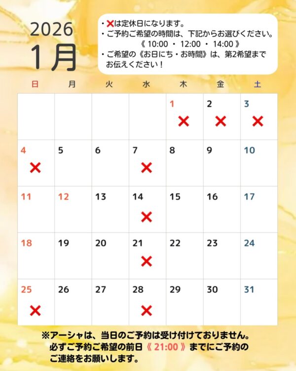 2026年1月のご予約可能日をお知らせいたします。